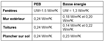 Dans le cas du présent projet, les valeurs minimums U sont imposées par la législation PEB. En pratique, on constate, cependant, techniquement et économiquement utile d’augmenter les performances des valeurs U afin d’atteindre des objectifs énergétiques ambitieux.